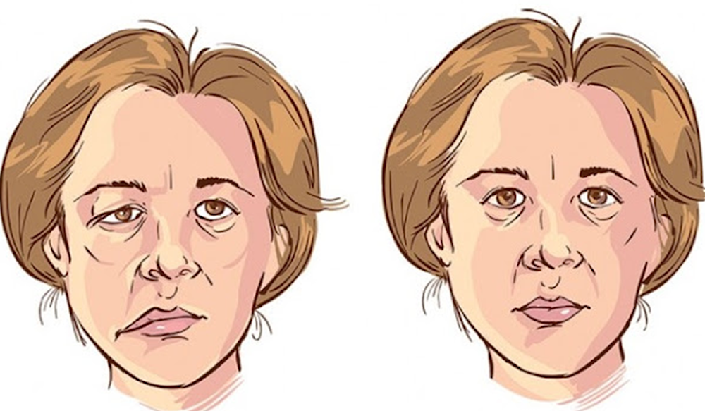 -ترهّل الوجه وصعوبة في التعبير عن تعابير الوجه، مثل إغلاق العين أو الابتسام.