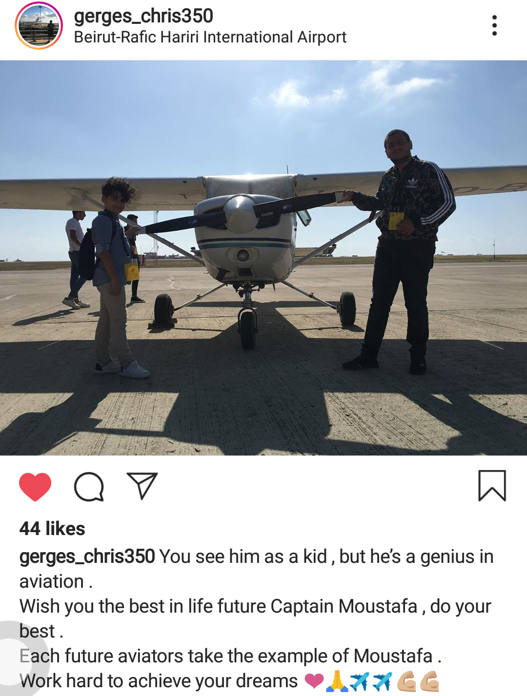 ويعقّب "يجب أن يكون مصطفى بعمر 18 حتى يدخل بشكلٍ قانوني إلى عالم الطيران من أبوابه الواسعة، وشغلته ستكون سهلة المنال فهو بارع".