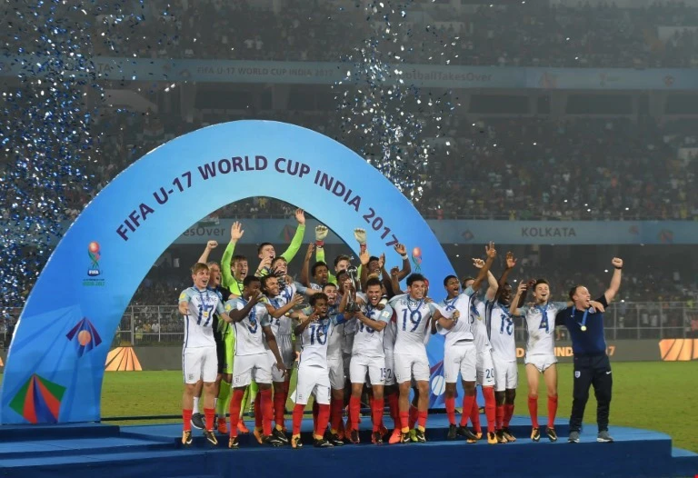 توّج المنتخب الإنكليزي بكأس العالم للناشئين لكرة القدم تحت 17 عاماً للمرة الأولى في تاريخه، اليوم السبت، بعد اكتساحه لنظيره الإسباني بنتيجة 5-2 على ملعب "يوبا بهاراتي كريرنغان" بمدينة كلكتا الهندية.